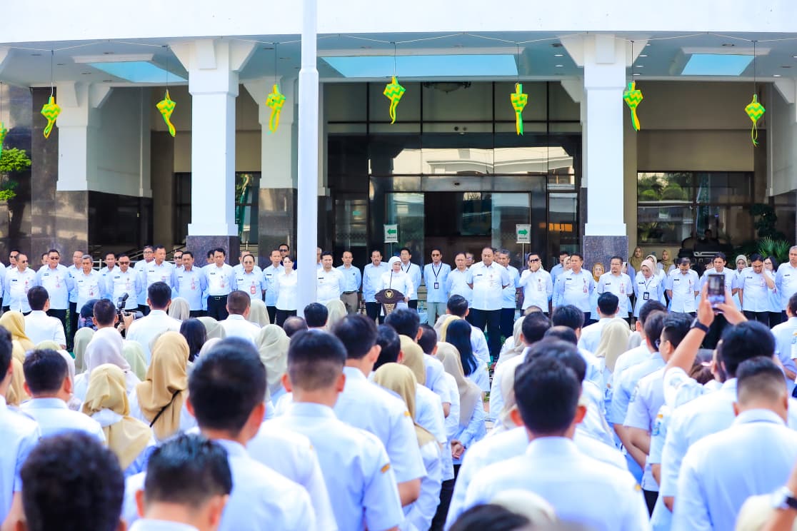 Tidak hanya itu, momentum Idul Fitri harus dijadikan sebagai titik awal baru dalam memperkuat soliditas dan solidaritas semangat pengabdian dalam bekerja kepada masyarakat. “Hari ini bukan sekadar hari pertama kita kembali bekerja, tetapi menjadi momentum reset semangat, memperkuat soliditas dan solidaritas serta komitmen kita sebagai ASN,” ungkapnya.