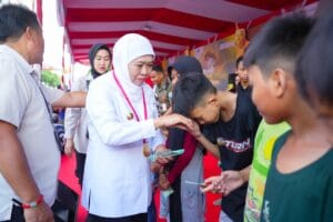 Kegiatan ini turut dihadiri Wakil Gubernur Jawa Timur Emil Elestianto Dardak, Ketua TP PKK Jawa Timur Arumi Bachsin Emil Dardak, serta jajaran kepala perangkat daerah di lingkungan Pemprov Jatim.