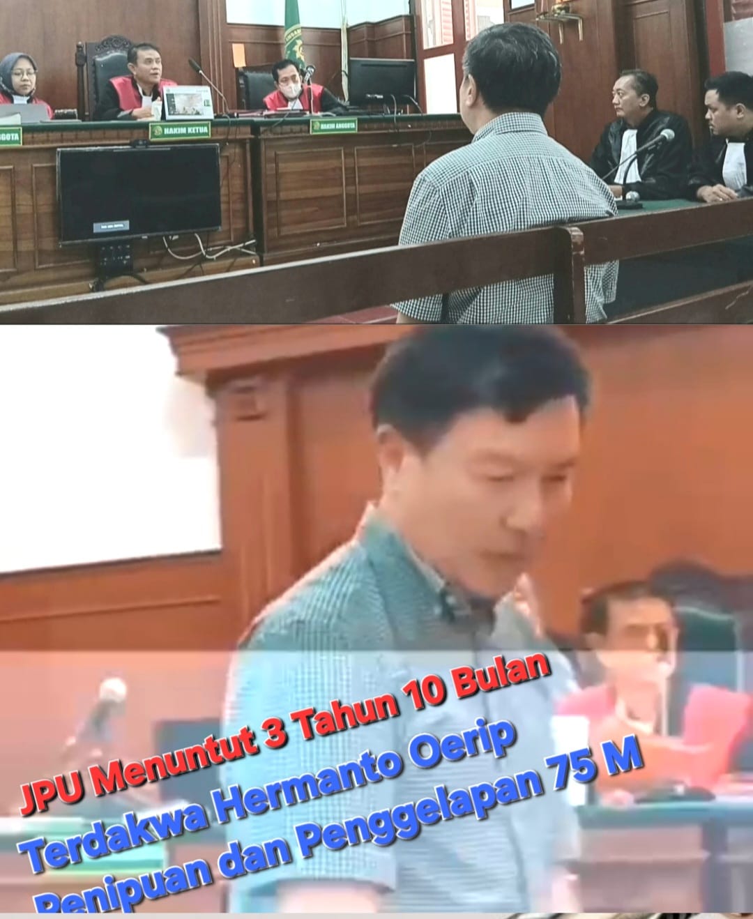 Terdakwa Hermanto Oerip pernah mengaku pada hakim di persidangan alasan sakit, ia dinilai terbukti secara sah dan meyakinkan melakukan tindak pidana penipuan dan penggelapan secara berlanjut yang mengakibatkan kerugian finansial pada pengusaha Soewondo Basoeki sebesar Rp75 miliar.